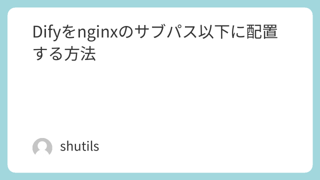 はじめにDify を別途 https 化した nginx のサブディレクトリ(例: /dify)に配置する機会がありました。手順が少し複雑だったため、同じような構成を検討している方の参考になるように、また自分への備忘録としてまとめます。前提...
